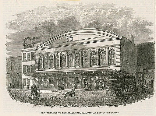 A contemporary image of Fenchurch Street. It opened in 1841, and was the first terminus built in the heart of the city. Previous ones like Euston were constructed in what were the outskirts at the time (Wikipedia)