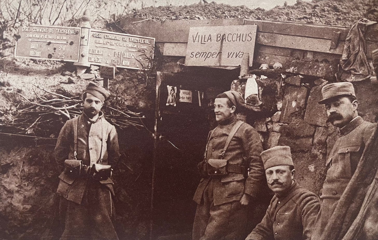 I love the sign they’ve stuck on this shelter. Bacchus was the Roman god of wine, among other things. Semper viva - Always alive. These men were clearly a spirited bunch. With stand out moustaches.